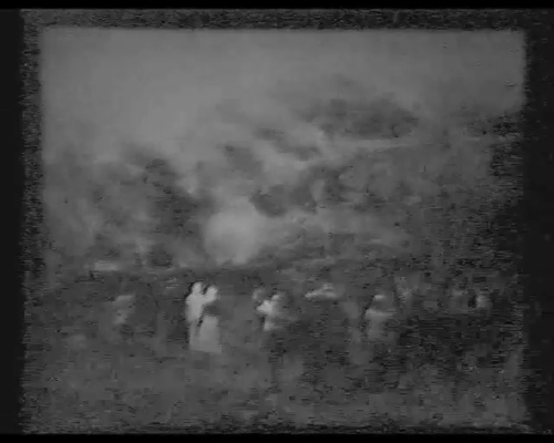 Nel volume "Catania. La città moderna, la città contemporanea" (a cura di Giuseppe Giarrizzo, Domenico San filippo Editore, 2012, p. 307), Alessandro De Filippo descrive così l'opera (presente del DVD allegato): le immagini «mostrano la lava che lambisce la stazione ferroviaria di Belpasso-Camporotondo. C’è la distruzione e l’orrore del torrente di fuoco, ma c’è anche la reazione dei cittadini etnei, che strappano alla lava tutto ciò che può servire alla ricostruzione: gli alberi sono abbattuti e sottratti al fuoco per essere poi utilizzati come materiale edile». Nelle didascalie in francese del filmato, visibile in una copia diffusa sui social, la lava «atterisce» la popolazione ripresa mentre cammina a ridosso del «terribile flusso» o di spalle interamente catturata dal fronte lavico (c'è anche qualche donna). L'operatore cerca di riprendere anche la lava che scende, si raffredda e si sgretola o le emissioni dal fronte. Dagi studi sullo storico delle eruzioni dell'Etna, potremmo dedurre che non si tratta dell'eruzione del 10-23 settembre 1911, legata alla frattura di un sistema in direzione Nord-est, da 3000 a 1650 metri, nelle aree di Randazzo e Linguaglossa (Solicchiata e Rovvitello). Il filmato è da riferirsi piuttosto alla prima eruzione del 1910 che interessò proprio le aree di Belpasso, Nicolosi e Borrello, tra il 23 aprile e 18 aprile 1910. Sarebbe da escludere la seconda, che iniziò a fine dicembre e proseguì nel gennaio del 1911 perché interessò l'area della Valle del Bove e non provocò danni a cose o persone, tranne per l'intensa ricaduta di cenere.