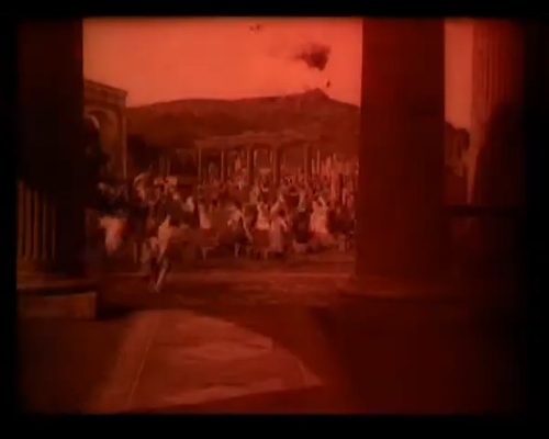 Uno dei molti adattamenti filmici dall'omonimo romanzo di Edward Buwler-Lytton (1834). Il film di Eleutero Rodolfi (Società Anonima Ambrosio) diventa diretto competitor del quasi omonimo e coevo "Jone o Gli ultimi giorni di Pompei" di Vidoli e Del Colli (Pasquali). Ne nasce una controversia giudiziaria. Il film dà vita alla scena della catastrofe eruttiva all'interno dell'arena in cui il protagonista Glauco viene condannato ad affrontare i leoni, perché accusato di omicidio da parte di Arbace, che vuole sposare la sua amata Jone. Vengono utilizzate anche immagini dal vero relative a colate laviche distruttive. Dentro la villa del protagonista, vengono mostrati i 'fumi' (gas delle emissioni o ceneri) in mezzo ai quali intravediamo una delle protagoniste, Nidia, la cieca che ama Glauco. Alle scene in campo lunghissimo o lungo della distruzione di Pompei, evidenziando soprattutto le sue architetture, si alternano scene dal vero in un climax che fa precipitare sempre più nubi nere sulla città. Si vedranno morire diversi personaggi sotto il peso delle colonne (un topos fino ai videogiochi contemporanei) e animali in scena (dei cavalli). Alla fine si notano, sullo sfondo del vulcano ancora in eruzione, è stato usato probabilmente un modellino o una ricostruzione bidimensionale con effetti speciali in prospettiva), alcuni personaggi che si allontanano sani e salvi su una barca.