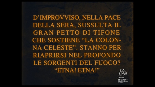 "Cabiria" è il film di maggior successo internazionale del periodo delle origini del cinema italiano. Fu oggetto di una diatriba giudiziaria per il riconoscimento dell'attribuzione dell'autorialità al regista, Giovanni Pastrone, il cui nome in fase promozionale venne odombrato da quello di Gabriele D'Annunzio (che compose le didascalie). La vicenda, ambientata intorno al III sec a.C., ruota intorno al rapimento di Cabiria, la bambina protagonista, durante una violenta eruzione dell'Etna, che distrugge in parte la villa del padre, l'aristocratico romano Batto. Salvata dalla nutrice Croessa, viene in seguito catturata da pirati fenici sulla spiaggia. Viene portata a Cartagine e lì venduta per essere sacrificata al Moloch dal sacerdote Khartalo. Si salva ancora una volta, grazie all'intervento di Fulvio Axilla e del suo schiavo Maciste, le cui gesta intercettano la cornice storica del conflitto fra romani e cartaginesi. La scena dell'eruzione, contrariamente a quanto avviene nella produzione coeva, è posta all'inizio del film e non come apice finale. L'effetto è rafforzato dalle didascalie di D'Annunzio e dal viraggio al rosso e al blu della pellicola. Giovanni Pastrone, con il sostegno di un'equipe tecnica avanzatissima, guidata dallo spagnolo Segundo de Chomón, realizza per la prima volta un modellino in prospettiva dell'esplosione del vulcano, in un apparente campo lunghissimo fra giochi di prospettive, illuminazioni ed effetti pirotecnici che mostrano i personaggi in fuga. La distruzione e i tentativi di trovare scampo dentro la villa appaiono, rispetto ai film precedenti, più ricchi di dettagli e meglio illuminati. Nella scena finale, l'accento è posto sulla disperazione dei genitori di Cabiria, che non riescono a ritrovare la figlia. Il film viene proiettato nelle più grandi sale teatrali, con accompagnamento sinfonico musicale. Nel 1931 il regista realizza una seconda versione che vede la riduzione di alcune scene, nuove riprese e lo spostamento dell'esecuzione della "Sinfonia del fuoco" di Pizzetti dall'apertura alla sequenza del tempio di Moloch. Nel 2023 è stata realizzata una versione ridotta in VR, "Cabiria Experience", per promuovere la conoscenza del film presso le nuove generazioni.