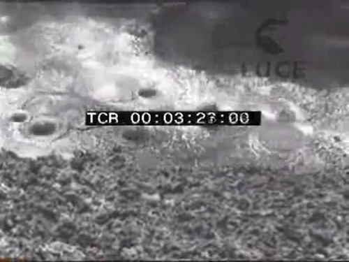Le immagini scorrono su alcuni fenomeni vulcanici in corso nell'area campana. Gas, brandelli di lava e fango si levano verso l'alto. Si osserva lo scorcio di un cratere all'interno del quale il fango bolle mentre continuano le emissioni di gas. Un soffio di questi fuoriesce da un cratere mentre in secondo piano si scorgono dei palazzi. La mano di un uomo sfiora con un ramoscello il terreno incandescente. Seguono altri dettagli di emissioni e terreni vulcanici. Viene mostato il dettaglio del fango e della lava che ribollono. Un uomo, chino sul terreno agita il braccio sfiorando il terreno mentre tiene in mano un giornale [?]. Inquadratura frontale dell'uomo, ancora chino sul terreno, che agita il braccio indietreggiando lentamente. Seguono altri scorci del paesaggio di lava ed emissioni. È mostrato alla fine il dettaglio della bocca di un piccolo cratere da cui fuoriescono gas e ancora fango che bolle in una cavità.