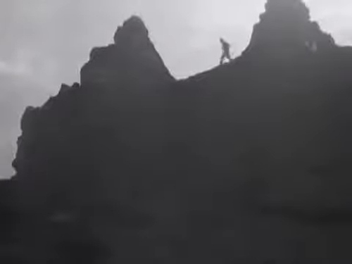 Alla fine di questo cortometraggio compare l'osservatore del vulcano, che diventerà il guardiano nel film di Dieterle, punto di riferimento soprattutto della protagonista Maddalena, ma profondo conoscitore sia del territorio che della comunità. Qui egli sale con fatica al cratere con il vento fortissimo sulla cima, alta quasi mille metri tra le nebbie. «Conosce il suo mostro, testa gli umori e ne prevede le intenzioni. Ne parla come uno smisurato e tremendo essere vivente, dice oggi che lui è cattivo oppure che lui è buono, stamane, annota le vicende per gli studiosi lontani». Viene ripreso mentre sale sul vulcano, prende appunti e poi quando scende. Le sue inquadrature si alternano poi a immagini degli abitanti preoccupati e di animali, che ricorrono anche poi nei due film di finzione. Mentre si riprendono alcuni scorci del paese la voce fuori campo nota che gli abitanti «attendono ansiosamente il ritorno» del guardiano. Infatti, « [...] l'incubo sordo e perenne può venire momentaneamente lenito dalle parole dell'uomo ed egli corre sulla cenere sterile e nera per portare notizie rassicuranti».