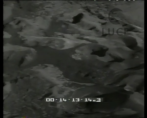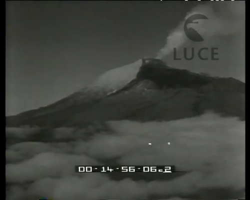 Il filmato in bianco e nero è una veduta aerea dell'Etna dopo l'eruzione del 2-5 dicembre 1949. Le riprese sembrano realizzate in momenti diversi e poi assemblate. La voce fuori campo commenta gli effetti sul manto di neve (un topos ricorrente). Questa nota che è come se la «vecchia pelle» della terra fosse stata «crivellata» (dopo il secondo conflitto mondiale sono molti i parallelismi con la guerra). Inoltre, per la stessa, «cicatrici di crateri estinti scrivono la storia di collere di altri tempi». Sono riprese poi due bocche attive del vulcano, «rabbonite ma non spente». Se la neve non fosse vista come un «dolce candore» sembrerebbe, per il commentatore, come se fossimo sulla crosta lunare. Si ricorda che gli antichi credevano che il grembo del vulcano ospitasse l'officina dell'omonimo dio e dei fucinatori dei tre giganti (Steramo, Piracmo e Bronte), mentre si osserva una colata di lava solidificata lungo i pendii innevati del vulcano. Le immagini della città di Bronte vengono messe in prospettiva rispetto a una colonna di emissioni da una bocca del vulcano, che rendono il senso della «recente minaccia». «Ghirlande di nubi si esalano ora dal monte, la fucina dei giganti sta prendendo le ferie. Lunghe ferie speriamo!», conclude la voice over. Fonte completa al link. Per consultare gli altri documenti disponibili si veda la raccolta "Etna 1949", a partire dai suggerimenti contenuti in questa scheda....