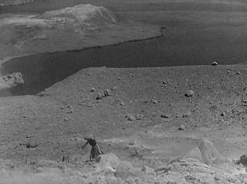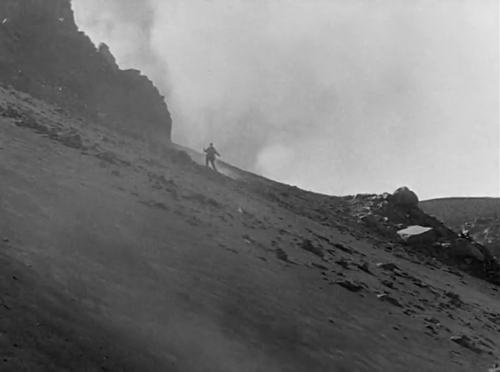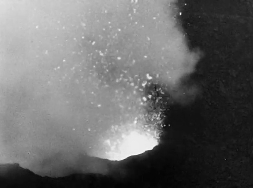 Nel frattempo, quando si cerca Maddalena, scomparsa dopo il ritrovamento del cadavedere di Donato, un'eruzione sconvolge l'isola. Viene ricreata una scena con fumi, ceneri, in cui tutti fuggono tra le fiamme, compresi gli animali, dalla durata breve ma dal ritmo serrato. La rappresentazione poggia sulla ricostruzione di esplosioni e crolli molto realistici con la camera spesso fuori asse nelle angolazioni di ripresa e sull'uso di riprese dal vero sia del cratere che per l'arrivo di materiale vulcanico in mare. Qualcuno cade in una spaccatura (scena ricostruita facendo cadere un personaggio sotto il livello della camera). Dalla catastrofe riemerge Maddalena che dopo un ultimo bagliore infuocato sarà seppellita dall'eruzione.