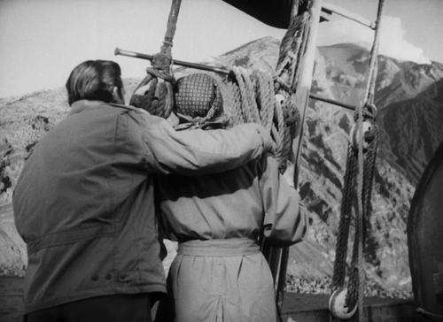 Durante il viaggio in barca si realizza la prima visione e il primo incontro fra Karin e il vulcano, additato da Antonio, mentre comincia a manifestare già i primi segnali di difficoltà di adattamento a un nuovo ambiente e a nuove consuetudini.