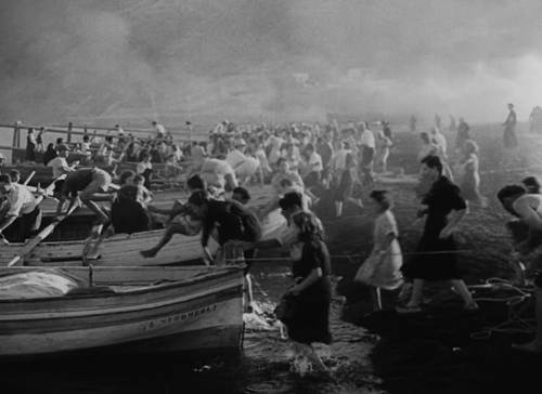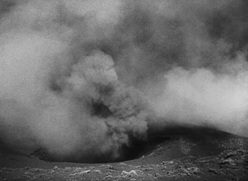 Mentre è a casa, esplode un'eruzione del vulcano che mette a rischio la vita di tutti gli isolani. La scena della catastrofe è realizzata ricorrendo a effetti speciali di caduta di ceneri, fumi, riprese dal vero del vulcano sia di giorno che di notte mentre gli abitanti si rifugiano sulle barche in mare. Qui saranno raccolti in preghiera.