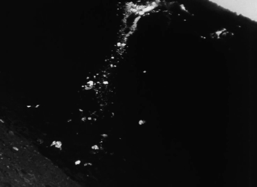 All'approdo è scortata sottobraccio alle pendici del vulcano verso la casa, molto povera e tutta da sistemare, in cui non riuscirà sin dall'inizio a vivere, confinata dentro il perimetro dell'isola vulcanica in cui trova comunque da sola degli spazi di vita fra le insenature e le costruzioni vulcaniche.