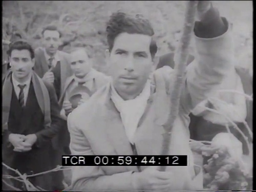 Il filmato, senza sonoro e in bianco e nero, di sette minuti, fa parte del Repertorio Incom. Si tratta dell'eruzione del 25 novembre 1950, conclusasi il 2 dicembre 1951. Minacciò i paesi di Milo, Fornazzo, Rinazzo, Caselle e, più lontano, Zafferana Etnea che non furono però colpiti poi direttamente. Il video e la fonte completa del documento si trovano al link. Per una descrizione generale dell'eruzione e i documenti correlati si veda la raccolta "Etna 1950", a partire dagli esempi di seguito. Per favorire la ricerca semantica nell'archivio e la consultazione del documento si presenta qui una descrizione in close reading, tenendo conto che si tratta di un montaggio non logico. Il filmato nella parte iniziale mostra sfollati che caricano i propri beni su camion con l'aiuto di soldati. Alcuni uomini sono con lo sguardo perso nel vuoto.