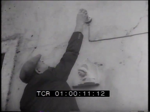La cinepresa viene sistemata vicino al fronte lavico (si notino anche le operazioni di setting e caricamento della pellicola nel filmato).