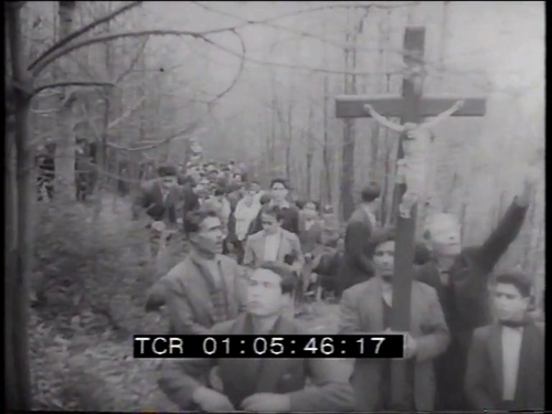 Si ripetono nel documento varie scene di uomini che camminano, il suono della campana, il sollevamento del trattore e le operazioni di smontaggio delle case e caricamento mentre gli abitanti seguono le operazioni con aria affranta, in ginocchio mentre pregano o in processione anche nei pressi del fronte lavico.