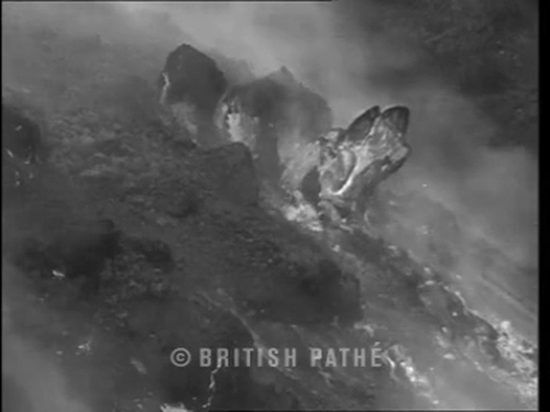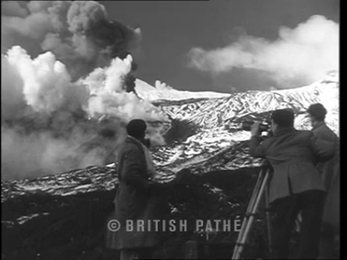 Alcuni operatori, fra cui come sappiamo da altri riscontri archivistici, vi è il regista Paolella, riprendono delle immagini ad alta quota dell'eruzione.