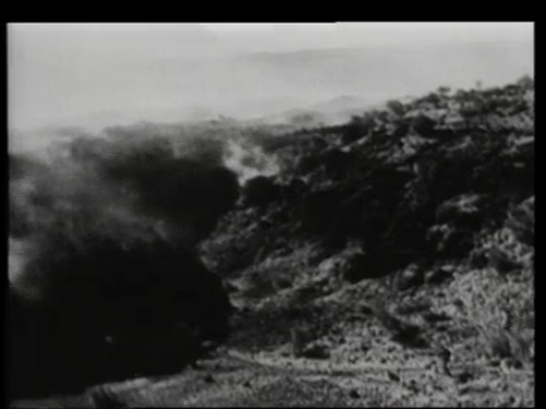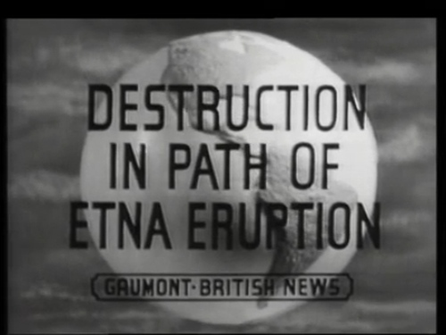Il brevissimo filmato in bianco e nero, titolato nelle didascalie interne "Destruction in path of Etna eruption", riguarda l'eruzione fra il 25 novembre 1950 e il 2 dicembre 1951. Il documento in apertura presenta delle sequenze che riprendono le emissioni del vulcano innevato (un topos) in panoramica da una quota media, inquadradando delle persone di spalle. Le immagini si concentrano poi su dei campi più ravvicinati ad alta quota. Alcune persone corrono accanto al fronte lavico inquadrato da una panoramica. Sono proposte poi delle immagini con dei dettagli dell'avanzamento della massa, sottolineato dall'aumento della musica tensiva. Alcuni abitanti (definiti in maniera generale dalla voce fuori campo inglese 'contadini') pregano a ridosso dell'eruzione. La voice over sottolinea la percezione dei tremori e delle esplosioni che sono state «preludio» della «nuova e violenta eruzione». La lava, informa il commento, è avanzata rapidamente verso i villaggi «sfortunati (helpless)». Un abitante sarebbe stato colpito. Si sono predisposte le evacuazioni e, ironicamente, i santi locali mentre il flusso di rocce fuse avanzavano muovendo «la più spettacolare esplosione di questo terrificante vulcano siciliano».