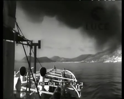 Il servizio in bianco e nero mostra in apertura l'eruzione del vulcano, osservata dal punto di vista di alcuni fotografi che si trovano su delle barche. Per questi, secondo la voce fuori campo, il fenomeno diventa un «fantasmagorico spettacolo».