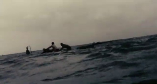 Nel filmato vi è anche la ripresa di una mareggiata che sorprende i perscatori in mare, uno dei contrasti dell'isola eoliana evidenziati da De Seta.