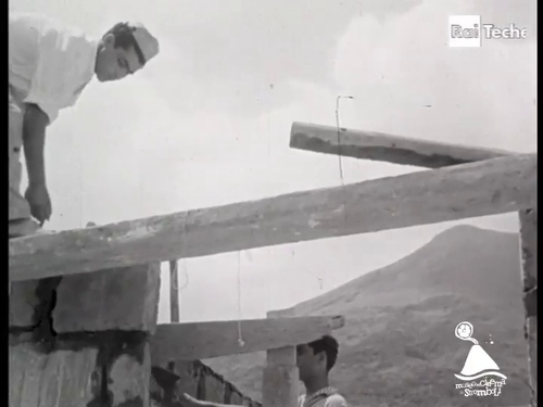 Ogni anno il contadino di Stromboli, ripreso in primo piano, dissoda un nuovo campo. «Strappa alla lava un angolo di buona terra. Con i nuovi capitali che il turismo porta nell'isola. L'attuale produzione di 500 ettolitri di pregiato vino Malvasia potrà essere portata all'antico livello. Adesso la montagna di fuoco – ripresa in controcampo – gli fa meno paura. Si ribellerà l'antico dio maligno che abita nel cratere in cima al monte».