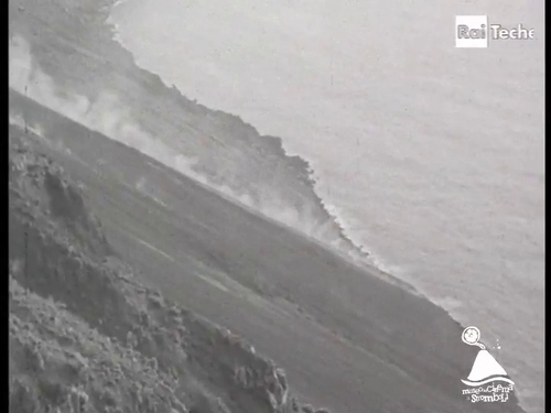 Il servizio si conclude con la caduta di rocce laviche, ancora non del tutto raffreddate che, giunte in mare per il pendio ripido, provocano dei sbuffi di vapore. Lo stesso vale per le rocce laviche costiere, surriscaldate dalla temperatura del suolo, all'infrangersi delle onde. La voice over aggiunge: «Si chiama la sciara del fuoco. Questa immensa parete di lava solidificata. Le pietre roventi eruttate dalla bocca vulcanica rotolano per la china fino al mare. È dai primi tempi del mondo che ogni giorno, ogni notte Stromboli dà il suo spettacolo. Lo si può osservare agevolmente dal mare. Sembra quasi che l'antico vulcano abbia pensato alle esigenze del turismo moderno. È uno spettacolo che bisogna vedere almeno una volta nella vita...».