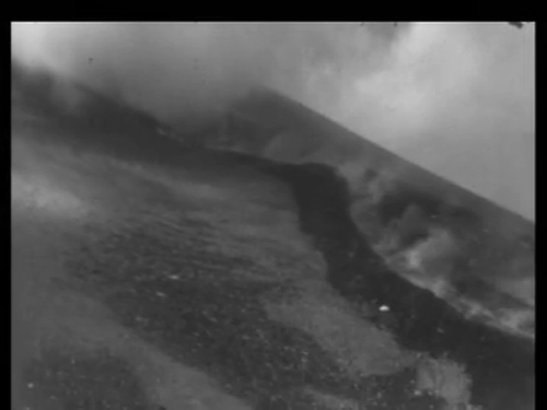 Il brevissimo filmato cinegiornalistico in bianco e nero riprende la colata dell'eruzione prima dal basso e poi dall'alto, lo scorrimento di un canale lavico in campo medio e in dettaglio. Alcuni turisti o scienziati, non è chiaro, osservano da vicino. Si notano l'osservatorio ad alta quota e, alla fine del filmato, una strumentazione installata sul luogo. Vista l'assenza di neve l'attività potrebbe riferirsi a quella del 1964 tra il 7 aprile e il 5 luglio del 1964.
