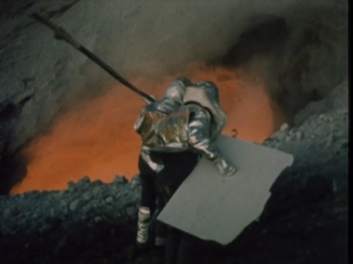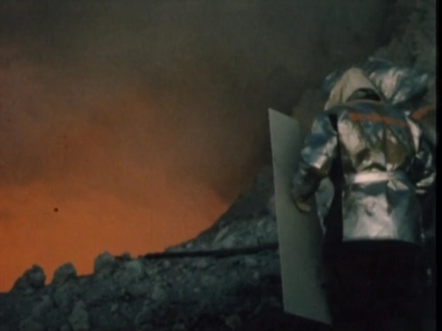 In laboratorio, un fisico spiega che il lavoro consiste nel prendere una 'canna' (un'asta) e avvicinarla al cratere. Lì la temperatura è tale che bisogna adottare delle speciali combinazioni (viene inquadrata anche la tuta protettiva che presenta un visore rettangolare). Il montaggio riprende le immagini della Bocca Nuova dalla quale proviene una luce rossastra, quasi infernale. Si vedono i gas, di cui si sente il rumore. La ripresa ravvicinata e in soggettiva favorisce l'immedesimazione di spettatori e spettatrici durante l'operazione.
