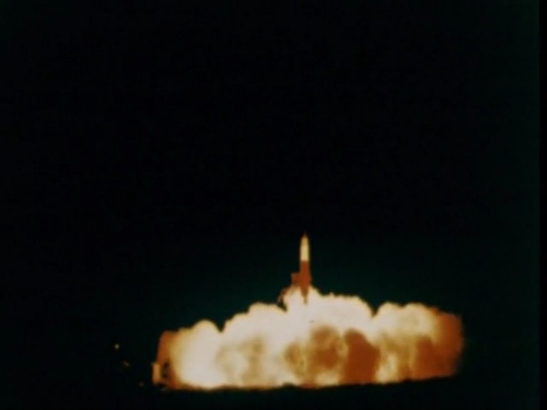 La sequenza successiva filma il lavoro di preparazione all'alba nella parte sommitale del vulcano da cui si vedono le nubi più in basso, per l'alta quota. Dopo la vestizione, gli scienziati si avvicinano alla bocca. Si adotta anche una sorta di scudo metallico per proteggersi dall'andamento delle emissioni irregolari. Le misurazioni, come precisa la voce fuori campo, non devono avvenire nè troppo in aria nè troppo in profondità e vengono svolte di giorno e di notte. Le immagini successive, dal tramonto, riprendono infatti il lavoro notturno in cui si scorge appena il profilo degli operatori contro le esplosioni e le emissioni rossastre. La musica qui si accentua, si intensifica e si fa sinistra marcando il corpo a corpo.