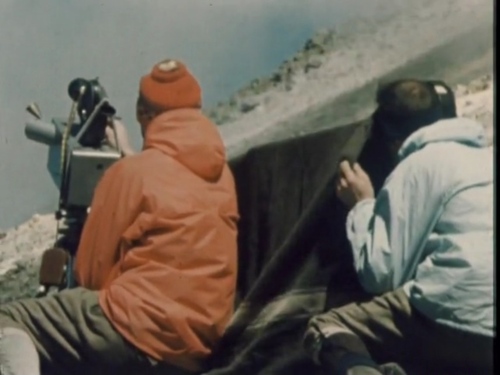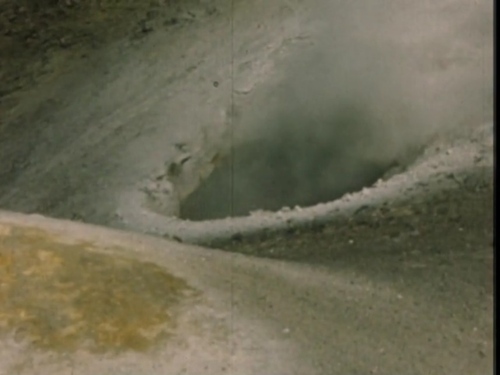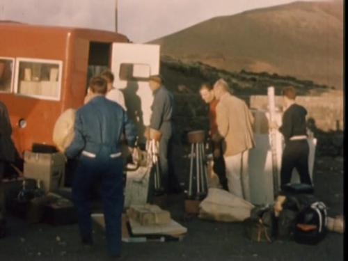 La sequenza successiva mostra con una panoramica tilt la formazione dei piccoli crateri secondari nelle aree di lava raffreddata che formano, solidificandosi, edifici conici. Queste strutture vengono chiamte 'hornitos' e rappresentano, come spiega Tazieff, delle aree predilette per la rilevazione delle emissioni di gas. Gli hornitos (termine spagnolo che significa "piccolo forno") sono formazioni coniche o a colonna o camino, composte da frammenti di lava saldati tra loro, che si formano sopra la crosta di una colata lavica attiva quando la pressione idrostatica o l'accumulo di gas sotto la superficie indurita di una colata spinge la lava fusa attraverso una frattura della crosta. Dopo i dettagli, vengono introdotte le immagini derivate da una camera speciale equipaggiata in modo da registrare la combustione di particolari metalli introdotti negli hornitos a intervalli regolari nel flusso del gas. In laboratorio si mostrano degli scatti fotografici, in cui si sottolinea che, fotografando il cratere con dei tempi d'esposizione conosciuti, sulla pellicola si impressionano dei particolari delle tracce che formano dei piccoli vettori, di cui è possibile poi determinare la lunghezza. Così come è possibile usare anche la camera filmica a frequenze elevate, misurando gli sbuffi (se ne mostra l'esempio visivo). In laboratorio sono sintetizzati due grafici che mostrano la comparazione dell'andamento delle temperature e delle emissioni de gas. Tazieff ne sottolinea l'interesse nel mettere in mostra la variabilità dei diversi parametri dell'attività eruttiva a differenti costanti di tempo. Nel momento dello sbuffo vi è un picco di temperatura e di calore e parallelamente si evidenziano le onde del flusso delle raffiche secondo dei massimali di altezza e di aspirazione. Anche i risultati della camera infrarossi tramite grafici mostra la successione degli sbuffi dalla base alla sommità della colonna del gas. Queste immagini hanno consentito di realizzare anche una mappa termocartografica della zona che mostra le aree sub parallele più calde del normale capaci di superare i 425 gradi centigradi. di aprire e liberare passaggi tra le lave incandescenti e la lava in fusione.