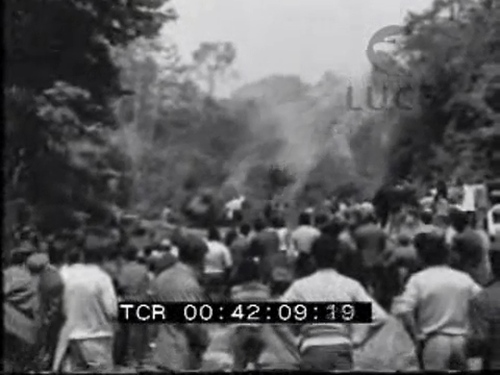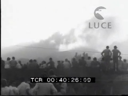 Altre persone vengono riprese di spalle o in primo piano. I più anziani, informa la voce fuori campo, ricordano chiaramente l'altra «esplosione di collera» che «seminò il panico» nella stessa zona trentasei anni prima (dovrebbe essere intorno al 1932) quando «i patroni locali, secondo le testimonianze riportate del luogo, avevano impedito la distruzione». Due donne si fanno il segno della croce. Nelle immagini montate successivamente la processione con un santo locale giunge vicino al fronte della colata. Ma la lava avanza distruggendo le strade. Il commento fa molta leva sull'improbabilità del miracolo per i vulcanologi ma anche sulla forza data dalla fede comunque di sperare e resistere al di là dell'apporto della scienza. Ne avranno bisogno soprattutto quando, conclude la voice over, il vulcano si sarà «stancato di rovesciare tonnellate di lava». Questa gente che, secondo la stessa, si ostina a non credere nell'origine scientifica dell'eruzione e crede nel miracolo dovrà «trovare in sè stessa la forza di dimenticare e ricominciare a vivere». Fra i tanti accorsi a osservare il fronte lavico vi è anche un uomo con una macchina fotografica.
