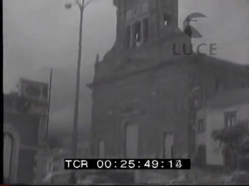 Il documento informa che il paese di Sant'Alfio (insieme a Fornazzo) è una delle aree più colpite dall'eruzione. L'abitato è ripreso in varie parti: dalla chiesa alla piazza del paese. Una vista dall'alto inquadra i paesi sulle pendici dell'Etna. Un successivo dettaglio si sofferma sugli agglomerati di lava che raffreddandosi si distaccano e rotolano tra i campi di mandorli. La zona coinvolta nell'eruzione, precisa la voice over, è fra le più ricche a livello vegetativo con un'economia agricola di vigneti, noccioleti, fruttteti, castagneti. Ma il benessere di questi paesi, aggiunge, non è data solo dalla fertilità della terra vulcanica ma anche dall'«operosità della gente che ha saputo domare la montagna, strappare dalle viscere del gigante le acque preziose». Le inquadrature in dettaglio mostrano la colata ancora viva sotto lo strato più superficiale. Alcune sequenze mostrano la lava incandescente che cola lungo le pendici del vulcano. Nell'ultima parte il commentatore crea una climax verbale che racchiude le potenzialità catastrofiche: si concentra sulle cause e gli effetti di ogni eruzione, ricorda la natura delle eruzioni basaltiche dell'Etna e la loro storicità che si perde nei tempi della leggenda. La più forte eruzione ricordata, quella del 1669, si spinse fino a Catania. In questa occasione, conclude, è scesa fino a 500 metri, «due settimane di grande paura e distruzione». Viene aggiunta una sonorità che riproduce quasi la lentezza del battito cardiaco e un rumore sinistro che sottolinea il clima di paura.