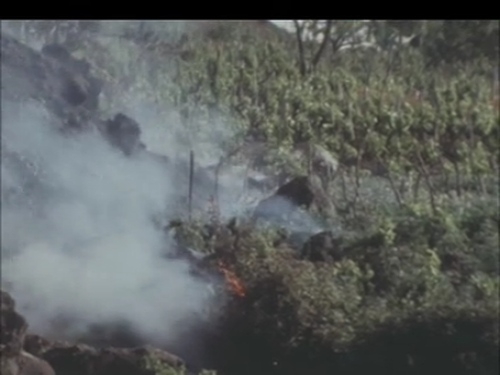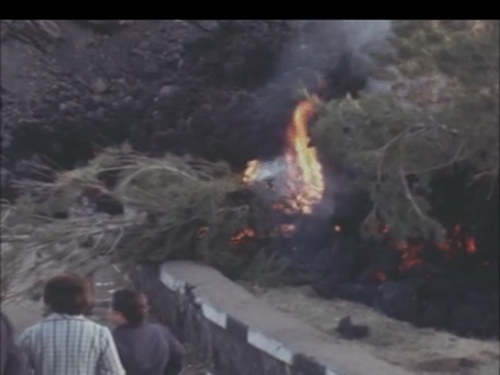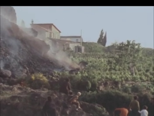 Il brevissimo filmato a colori con sonoro in presa diretta si riferisce alle eruzioni del 1971 inauguratesi il 5 aprile e proseguite fino al 12 giugno sul fianco Sud ed est del vulcano. Il documento si concentra nella parte iniziale sulle riprese dell'interruzione di una strada sul versante del vulcano. Seguono poi delle scene legate alla distruzione dei vigneti da parte dell'altissimo fronte lavico. È evidente dal confronto delle sue dimensioni rispetto alle persone che osservano. Le dotazioni dello zoom delle camere del periodo consente di filmare muovendo la camera dal dettaglio alla panoramica più ampia e viceversa in maniera fluida, sebbene sia evidente ancora uno scatto repentino poco fluido. Video e fonte completa al link. Per ulteriori dettagli sui fenomeni e i documenti dell'anno si veda la raccolta "Etna 1971", a partire dagli esempi di seguito....