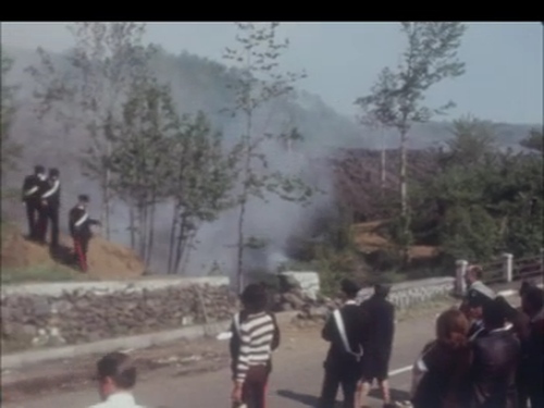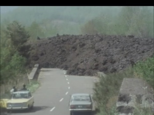 Il brevissimo filmato a colori senza sonoro si riferisce alle eruzioni del 1971 inauguratesi il 5 aprile e proseguite fino al 12 giugno sul fianco Sud ed est del vulcano. Il documento riprende panoramicamente gli incendi nelle aree boschive causati dalla colata. Mostra poi l'interruzione di una strada. I carabinieri vigilano nei dintorni del fronte lavico mentre alcuni cittadini portano via un grande dipinto da una casa facendolo scivolare su delle assi per caricarlo su un camion e altri stanno a guardare l'eruzione in vari punti. Il fronte lavico è inquadrato da vicino mostrando, grazie al progresso cromatico delle riprese, il sostrato ancora non raffreddatosi sotto la superficie. Video e fonte completa al link. Per ulteriori dettagli sui fenomeni e i documenti dell'anno si veda la raccolta "Etna 1971", a partire dagli esempi di seguito....