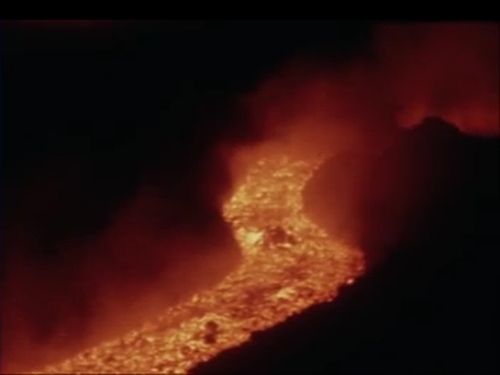 Il brevissimo filmato a colori senza sonoro si riferisce alle eruzioni del 1971 inauguratesi il 5 aprile e proseguite fino al 12 giugno sul fianco Sud ed est del vulcano. L'opera mostra in notturna due bocche in contemporanea in fase esplosiva.Si segue poi il canale lavico, in campo medio e lunghissimo, per poi tornare all'effetto dato dalle due bocche da un'altra prospettiva.