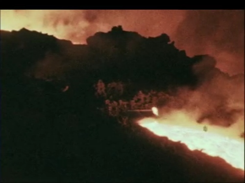 Il brevissimo filmato a colori senza sonoro si riferisce alle eruzioni del 1971 inauguratesi il 5 aprile e proseguite fino al 12 giugno sul fianco Sud ed est del vulcano. Il documento si apre con il primo piano di una donna in mezzo alla folla mentre prega per la fine dell'eruzione. Un gruppo di abitanti percorre le strade esterne e poi quelle nell'abitato in processione, guidati dalle autorità religiose. Nella sequenza successiva si mostra il canale lavico più in alto sia di giorno che di notte. Qualcuno nel frattempo preleva porzioni di lava e un uomo scatta delle foto.
