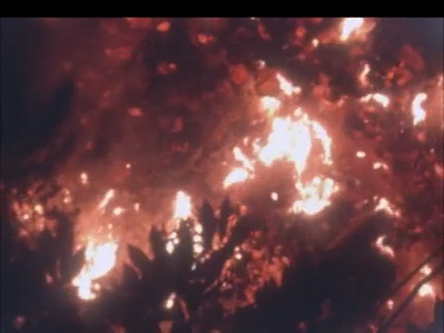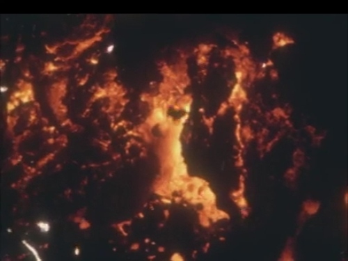 La prossimità dell'operatore è molto ravvicinata al fronte lavico e si concentra soprattutto su una sorta di narrazione della modulazione degli effetti 'infuocati' della lava. Questa incendia gli alberi. Appare come un muro di fuoco sotto la superficie, che si insinua sempre più e si stacca poi per blocchi. Sul finale del documento sembra esserci un time-lapse (condensazione temporale di riprese più lunghe) che unite a una perdita di riferimenti ottici della posizione di ripresa creano un senso di vertigine e di ribaltamento visivo, come se stessimo osservando dall'alto verso il basso l'eruzione.