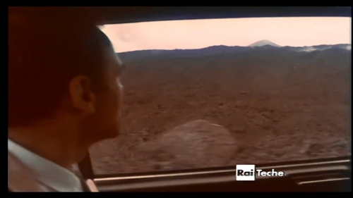 Il film si apre con il viaggio d'arrivo sull'autostrada in cui il vulcano si intravede fuorifuoco sullo specchietto laterale dell'auto che lo accompagna. In una sosta si ferma presso l'"Etna Bar", segnale della diffusione della cultura legata al vulcano sul territorio fra modernità e ancestralità. Nella parte successiva, alla fine dell'itinerario, il protagonista osserva infatti la sciara e la parte sommitale dell'edificio vulcanico. Giunto ad alta quota, una anziana donna siciliana gli consegna le chiavi del 'rifugio'.