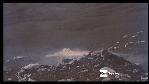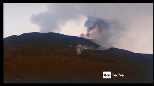 Osservando il vulcano, in attività con il classico pennacchio fra una sequenza e l'altra da cui si odono anche i boati, in una notte dalla stessa finestra in cui si ode solo il rumore, reciterà un lungo monologo in un italiano imperfetto: