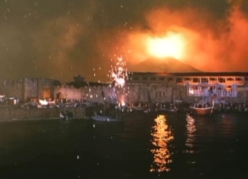 Il titolo racchiude una miniserie italo-americana in tre puntate andata in onda nel 1984. Venne girata nei Pinewood Studios e in Italia e distribuita sulle reti della ABC e della Rai come adattamento dall'omonimo romanzo di Edward Bulwer Lytton del 1834. Nel 2012 la Sony ha pubblicato una versione DVD. L'opera seriale mostra i diversi aspetti della vita a Pompei fino all'eruzione del Vesuvio che la distrusse. Tra i residenti della città figurano: Diomede, un mercante plebeo che grazie alla ricchezza accumulata con il commercio può permettersi di candidarsi alle elezioni contro il magistrato Quintus e di combinare un matrimonio aristocratico per sua figlia Giulia; il colto greco Glauco; il gladiatore Lydon; il nobile Antonio; sua sorella Ione; il malvagio sacerdote di Iside Arbaces, che brama il loro denaro e il loro potere; gli schiavi cristiani e il loro leader segreto, Olinthus, che temono la persecuzione. Come per i film, la visione del Vesuvio è realizzata sin dall'apertura tramite un fondale dipinto. Esso compare dapprima nei titoli di testa e poi nella parte iniziale del primo episodio della serie. Nel primo episodio compare come un luogo ameno su cui si affaccia la ridente e verdeggiante Pompei insieme ai suoi aristocratici concittadini. La forma del Vulcano sembra ispirata alla rappresentazione conica e quasi appuntita di uno dei pochi mosaici che lo rappresentano prima dell'eruzione. Tra i suoi pendii si riparano degli amanti e in un momento di intimità si ha il primo 'presagio' del disastro con un terremoto, la caduta di massi e delle statue nelle ville della città. L'esplosione del vulcano si avrà come di consueto all'apice drammatico delle vicende. La costruzione dell'eruzione si basa su diversi modellini ripresi in scala da vicino o tramite l'uso di più set miniaturizzati che racchiudono differenti location (l'arena, il foro e poi l'area costiera). L'eruzione è dettagliata mostrando anche le bombe della colonna eruttiva. Data la serialità della produzione, i momenti dell'eruzione si ampliano approfondendo dei dettagli rispetto al cast di personaggi ma anche della comunità, rappresentata da personaggi secondari e figuranti. Molte scene sembrano essere ispirate anche dalle 'storie' emerse dagli scavi di Pompei (gli amanti, il gladiatore, il cane) via via sommersi dalle ceneri. La serialità consente di evidenziare anche i contrasti all'interno della collettività e fra i singoli nella ricerca della salvezza. Per consultare gli altri adattamenti dal romanzo si veda la raccolta e storia "Gli ultimi giorni di Pompei". Per i dettagli del fenomeno storico e altri documenti invece si veda la raccolta "Vesuvio 79". Di seguito alcuni esempi....