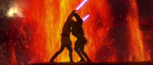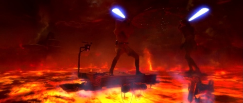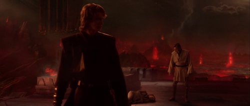 Ma scesi a terra, sul suolo lavico, Obi-Wan Kenobi ferisce Anakin che rimasto a terra prende fuoco, sfigurandosi in tutto il corpo a vita.