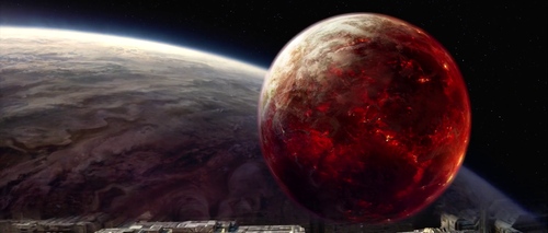 Si noti per la costruzione delle varie sequenze la simulazione del pianeta infuocato, che è oggetto nelle sale di controllo di monitoraggio (si vedano gli schermi al suo interno). Sul mondo interstellare esiste però un sistema che consente di vivere nel clima inospitale immerso fra vulcani, lava, soggetto anche alle azioni delle esplosioni sotto forma di fontane.