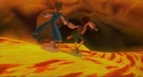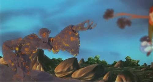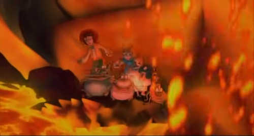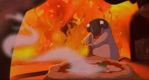 Il film di finzione animato è ambientato nell'area napoletana in cui si immagina che il Vesuvio sia abitato e personificato da Vesuvia, una sorta di spirito lavico infuocato cattivo. La personaggia osserva gli abitanti intorno dal fondo della lava (come se trasmettesse un segnale televisivo, tramite i rami degli alberi secchi su in superficie). Cerca di impossessarsi delle pentole magiche e fra vari momenti di musical ed eruzioni minaccerà una delle bambine protagoniste, rapendola insieme agli oggetti (animati) al centro delle sue mire. Il bambino protagonista tenterà di salvarle ma Vesuvia 'fuoriesce' dalla sua sede. L'unico modo di salvarsi è grazie alle pentole che fungono da barche in mezzo al canale del flusso lavico. Una volta fuori si raffredderà però da sola. In città intanto serve una sfiziosità per la regina, che viene preparata con il fuoco del vulcano: la pizza (lanciata per mezzo di nuove 'eruzioni' direttamente dall'edificio)....
