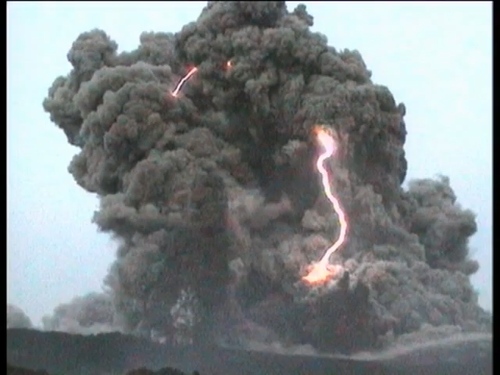 Una sequenza mostra il fenomeno delle scariche elettriche all'interno delle colonne eruttive, non rintracciato in altri documenti.