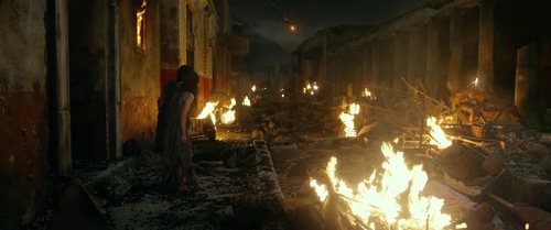 Milo può affrontare ancora una volta Quinto. Quando sta per concludersi il duello, la caduta del flusso piroclastico degenera. L'animazione CGI rievoca la sua velocità. I due protagonisti tentano la fuga verso il mare. L'opera si concude drammaticamente con uno dei topos delle narrazioni pompeiane legate alla passione dei personaggi nel momento della prossimità verso la morte.