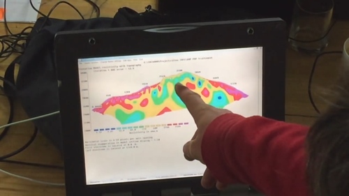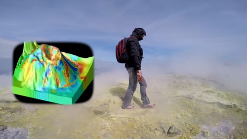Il filmato è girato tra il luglio 2015 e febbraio 2016 durante l'importante campagna di tomografia elettrica di resistività (ERT) e metodi geofisici complementari condotta sull'Etna, in Sicilia. Si tratta di una strumentazione scientifica che mappa le proprietà elettriche del sottosuolo per visualizzarne la struttura, misurando come la corrente elettrica si diffonde attraverso il terreno restituendone immagini 2D o 3D delle variazioni di resistività, che indicano tipi di terreno (argille, sabbie, rocce) o la presenza di acqua e strutture sepolte. Questa missione di tre settimane ha mobilitato circa venti scienziati sul vulcano. Il dispiegamento di cavi per diversi chilometri ha permesso di ottenere immagini approfondite delle strutture interne del vulcano, rivelando zone idrotermali, reti di faglie e altre caratteristiche geostrutturali all'interno dell'edificio vulcanico....