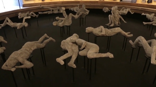 Non vi sono ricostruzioni visive dell'eruzione che viene rievocata verbalmente.
