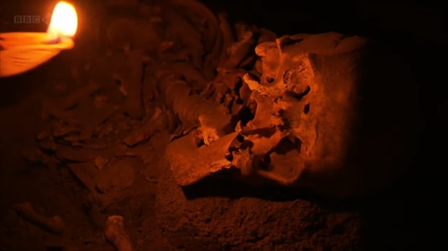Il documentario prodotto dalla BBC si concentra sulle storie intorno ai calchi, e alle persone morte dietro queste ricostruzioni archeologiche, a Pompei. Non vi è una rievocazione visiva dell'eruzione ma all'inizio e alla fine del filmato la città è ripresa al tramonto richiamando le atmosfere della catastrofe. È evidente soprattutto nella sequenza finale, quando con l'aiuto di una lampada a olio Mary Beard, la divulgatrice che guida il racconto, ricorda la fuga nei sotteranei e la morte di alcuni di essi. In questo passaggio, si segnala anche la visione del vulcano da un arco, topos della filmografia e della serialità dedicata alla catastrofe di Pompei. Per approfondire l'eruzione storica e i documenti si veda la raccolta "Vesuvio 79", a partire dagli esempi contenuti di seguito....