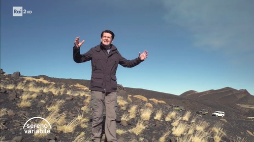 Giovanni Muciaccia e Osvaldo Bevilacqua conduce una puntata del programma "Sereno Variabile" dedicata a un viaggio alle pendici Nord dell'Etna. Oggetto delle riprese insieme ai paesaggi del vulcano sono la sua cucina, le sue vigne e i suoi artigiani. Il conduttore e divulgatore Muciaccia sale a piedi fino alle bocche dell'Etna dopo il suo, nell'area sommitale del Parco dell'Etna, come Patrimonio Mondiale dell'UNESCO nel 2018. Alcune sequenze mostrano la possibilità di andare in bici tra boschi e colate laviche di varie epoche o in sella a un asino, stimolando un'idea di sviluppo del legame con il territorio in un'ottica ecosostenibile. Tra la vegetazione ripresa vi è un castagno vecchio di oltre 2000 anni. Un cantastorie ne racconta la leggenda. Bevilacqua, invece, racconta le comunità e le storie dei paesi della cintura dell'Etna, soprattutto di Sant'Alfio. Nel filmato sono intervistati Salvo Caffo, geologo e presidente allora del Parco dell'Etna e una guardia forestale dell'Etna. Alcune sequenze rievocano eruzioni dell'Etna di non chiara datazione....