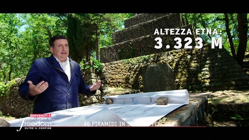 Nella puntata di "Freedom", Roberto Giacobbo sale verso la cima dell'Etna per conoscere i 'misteri' dietro la realizzazione di 40 piramidi in pietra lavica. Le immagini sono intervallate da riprese di repertorio dell'Etna in attività (non identificate temporalmente) e generiche. Le due puntate al link in fonte....