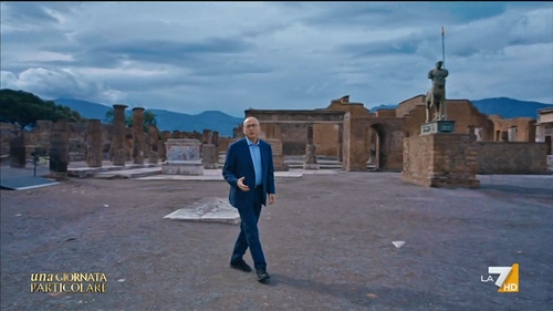 Aldo Cazzullo presenta un viaggio immaginario nella giornata cruciale dell'eruzione del Vesuvio che distrusse diversi centri nel 79 d.C. attraverso le storie di tre abitanti di Pompei. Aulo Rustio Vero, politico di lungo corso legato al potere; Crescente, un gladiatore che combatte per la gloria e la sopravvivenza; Eutyche, una prostituta testimone della vita quotidiana dell’epoca. Tramite l’Intelligenza Artificiale si sperimentano la rappresentazione della catastrofe, la ricostruzione dei luoghi e soprattutto i volti e le scene di queste figure realmente esistite, facendo rivivere le ultime, drammatiche ore della città. Durante la puntata si attraversano e ci si sofferma soprattutto sui luoghi a partire dagli scavi del parco archeologico, recuperando riferimenti ad altre fonti culturali (soprattutto letterarie). Lo speciale è realizzato anche insieme agli inviati Claudia Benassi e Raffaele Di Placido. Ospiti della puntata: Gabriel Zuchtriegel, direttore degli Scavi di Pompei; Maurizio Ravallese, storico; Marino Marini, archeochef. Anche se non si tratta di un adattamento diretto del romanzo di Bulwer Lytton "Gli ultimi giorni di Pompei", il rimando del titolo alle ultime ore di Pompei e, in parte, la narrativizzazione tramite dei personaggi rinvia di certo all'immaginario di quel lungo filone cinematografico e televisivo (si veda la raccolta dedicata per un confronto più approfondito).