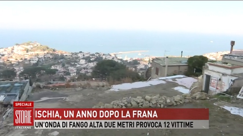 Lo speciale del programma "Storie Italiane" racconta la frana e alluvione che colpì Casamicciola Terme (a Ischia) nella notte del 26 novembre 2022. L'evento è ripreso e commentato nella puntata del 29 dicembre 2023, evidenziando le difficoltà dei soccorsi, la ricerca dei dispersi, l'evacuazione degli abitanti, la forza del fango che travolse case e auto, e le successive necessità di sgombero e messa in sicurezza del territorio, con un focus sui danni, il dramma umano e le operazioni di protezione civile. Il racconto si sviluppa a partire dal setting dedicato in studio che richiama la catastrofe fra vari schermi. Nel corso della trasmissione si riportano delle testimonianze anche tramite un inviato con interviste live. Si offrono dei dettagli e dati di approfondimento. In studio sono presenti giornalisti ed esperti. Alcuni video, montati per l'occasione, come quello musicale iniziale mirano a sensibilizzare il pubblico sul tema facendo leva però sulla violenza della frana che travolse il porto. Video al link in fonte....