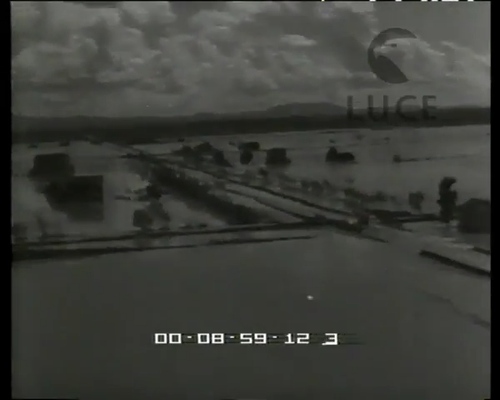 Nel breve cinegiornale in bianco e nero con voce fuori campo si sorvolano le aree di Capua e Benevento investite dall'alluvione. L'area appare sommersa dalle acque, l'aereo risale il corso del fiume Volturno che è straripato. I campi di grano sono stati inondati. L'aereo si dirige vero il beneventano e percorre il corso del fiume che è straripato. Anche qui i territori sono pieni di acqua.