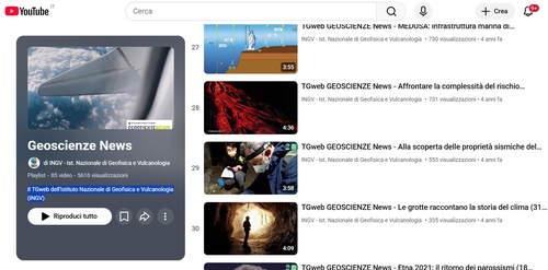 Il TGweb dell'Istituto Nazionale di Geofisica e Vulcanologia (INGV), realizzato in collaborazione con il canale Scienza&Tecnica dell'ANSA, è condiviso sul sito istituzionale e sul canale YouTube INGV.