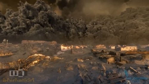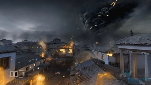 Il cortometraggio animato simula le 24 ore attraverso cui il paesaggio attorno al Vesuvio cambiò radicalmente. È stato pubblicato poi sulla piattaforma di videosharing di Youtube dove ha raggiunto oltre un milione e mezzo di visualizzazioni. L'opera è realizzata come se si trattasse di una webcam fissa ma non esteticamente per l'alta cinematografia e cura del rendering visivo. In primo piano si osservano i tetti delle case di Pompei e sullo sfondo il vulcano. La scansione temporale è data da intertitoli orari, in rosso su fondo nero. Obiettivo dell'opera è anche quello di ricreare il possibile paesaggio sonoro: si noti l'allarme degli uccelli e il latrato dei cani. A poco a poco, sempre con l'inquadratura statica, si restituiscono gli effetti dell'eruzione con i parossismi, i crolli delle case dovuti alla caduta di cenere (alcuni sembrano poco realistici), il flusso piroclastico in caduta (che come accade spesso nelle rappresentazioni sembra investire poi gli spettatori in soggettiva) e la città sommersa dalle ceneri.