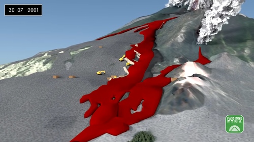 Nel web doc creato da Antonio De Luca del canale web divulgativo con animazioni 3D e le riprese del tempo di Simone Genovese (geologo e reporter) si mostra la storia e le azioni in occasione dell'eruzione laterale del 2001 nel versante Sud che minacciò soprattutto il territorio di Nicolosi e le strutture turistiche del Rifugio Sapienza. Si ebbero disagi anche per la caduta di cenere.